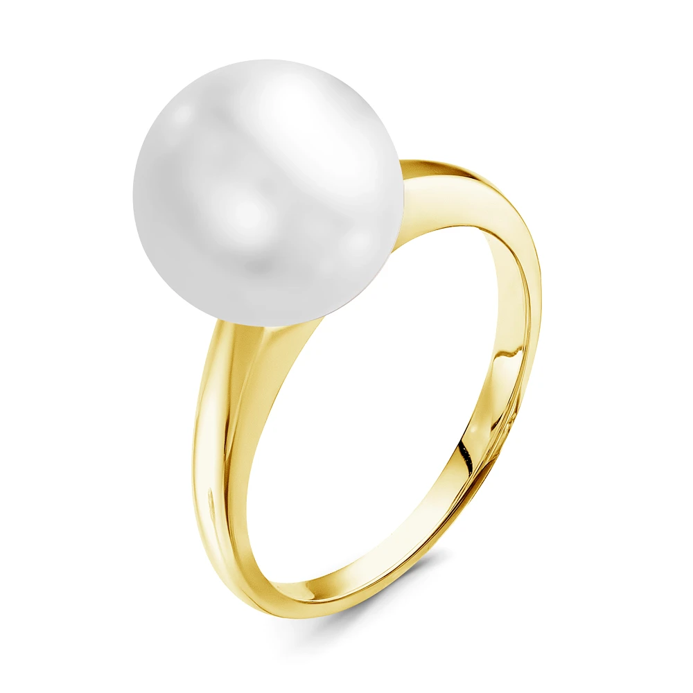 Кольцо из желтого золота с белой морской Австралийской жемчужиной 12,6-12,9 мм, (3303)
