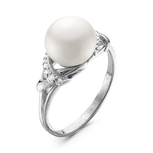 Кольцо из белого золота с белой речной жемчужиной 8,5-9 мм, (7569)