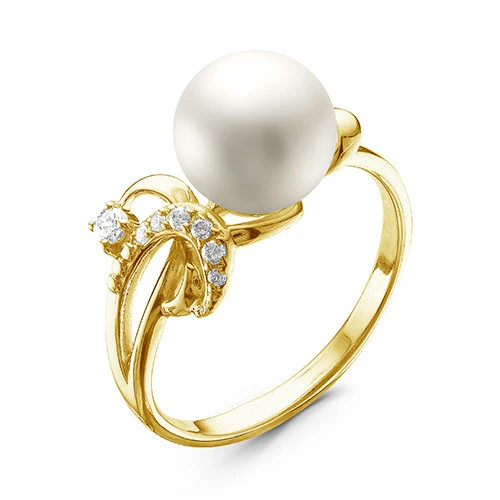 Кольцо из желтого золота с белой речной жемчужиной 8,5-9 мм, (7372)