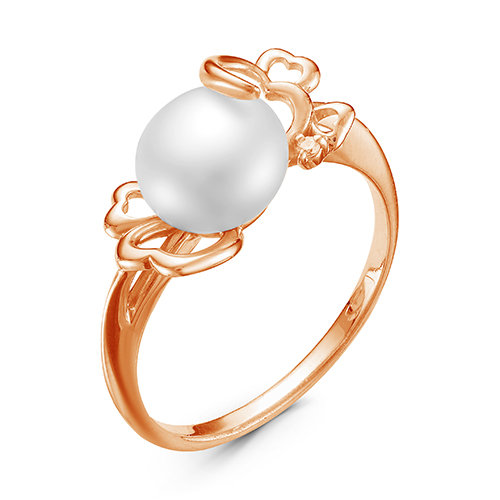Кольцо из красного золота с белой речной жемчужиной 7,5-8 мм, (7554)