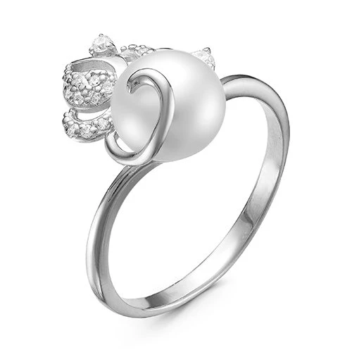 Кольцо из белого золота с белой речной жемчужиной 7,5-8 мм, (7579)