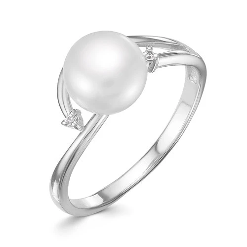 Кольцо из белого золота с белой речной жемчужиной 8,5-9 мм, (7255)