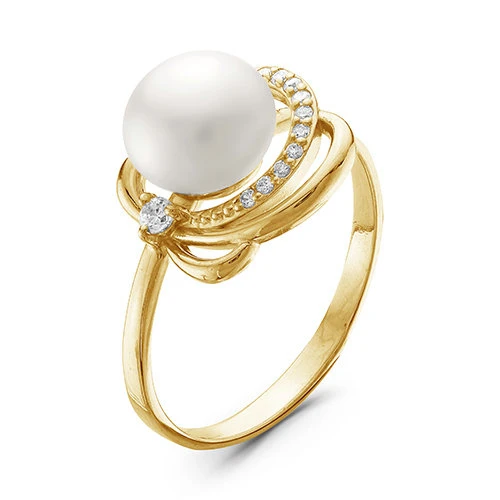 Кольцо из желтого золота с белой речной жемчужиной 7-7,5 мм, (7370)