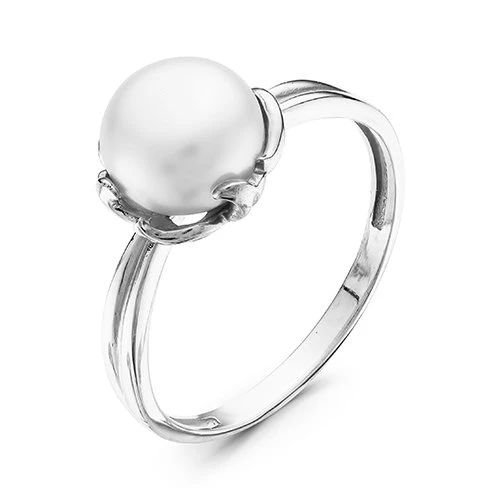 Кольцо из белого золота с белой речной жемчужиной 7,5-8 мм, (7573)