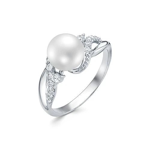 Кольцо из белого золота с белой речной жемчужиной 8,5-9 мм, (7368)