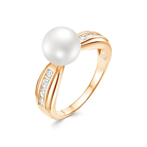 Кольцо из красного золота с белой речной жемчужиной 8,5-9 мм, (7552)