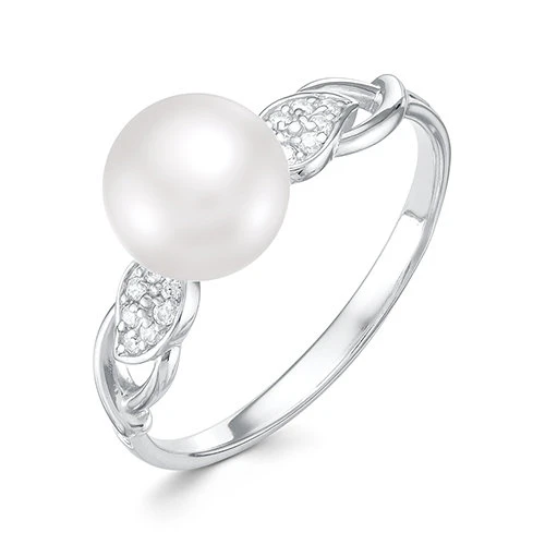 Кольцо из белого золота с белой речной жемчужиной 7,5-8 мм, (7252)