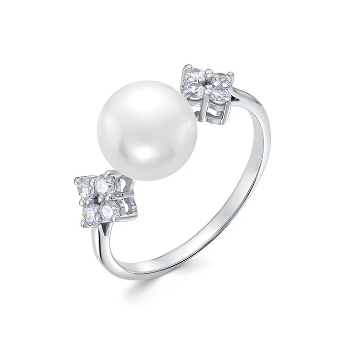 Кольцо из белого золота с белой речной жемчужиной 8,5-9 мм, (7585)