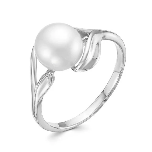 Кольцо из белого золота с белой речной жемчужиной 7,5-8 мм, (7581)