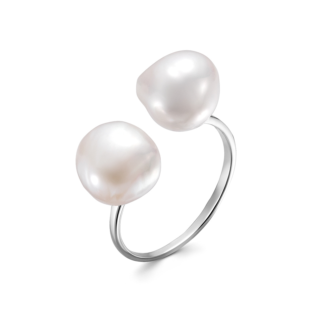 Кольцо "Диор" из серебра с белыми жемчужинами "Барокко" 10-11 мм, (7829)