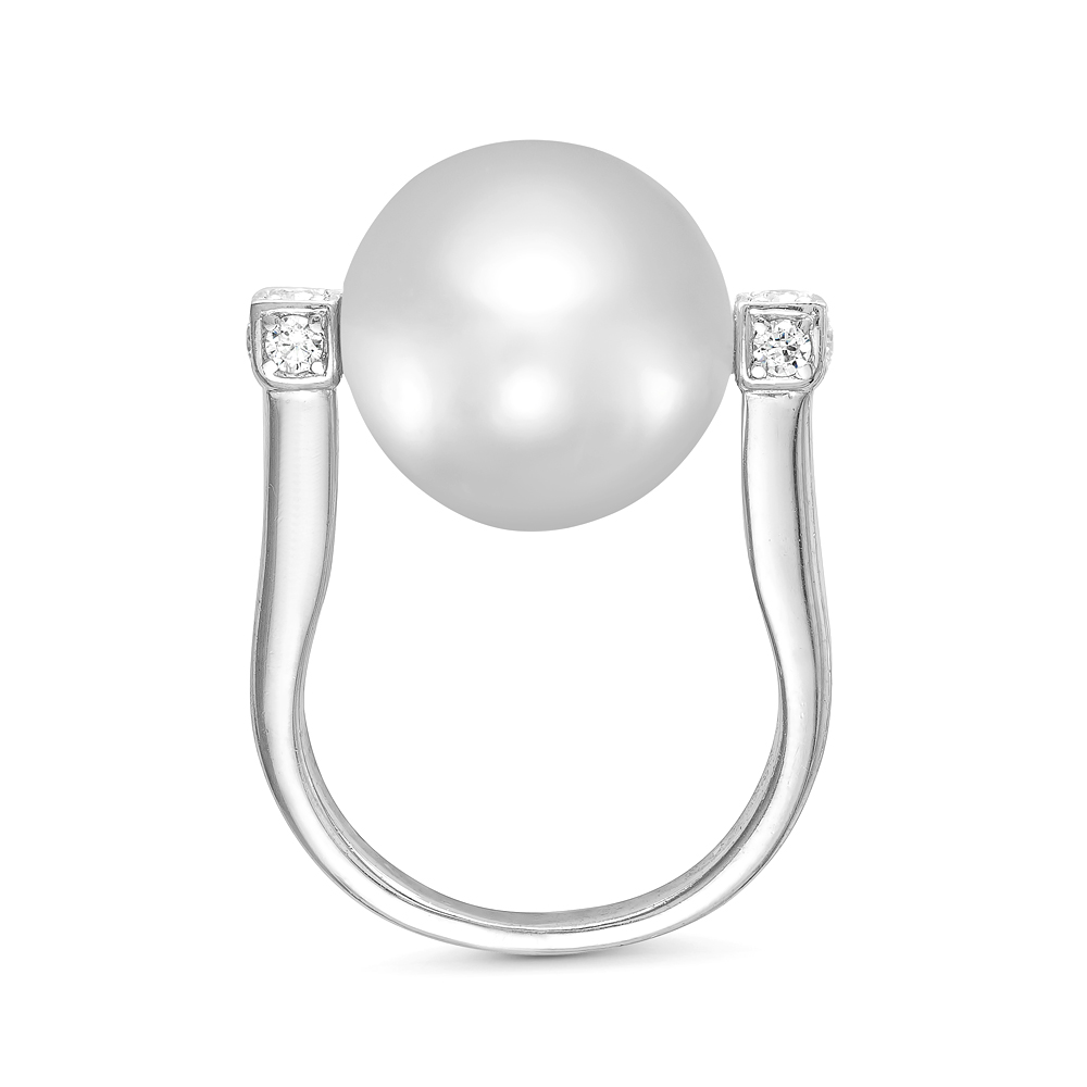 Кольцо из серебра с белой речной жемчужиной "Эдисон" 12,5-13 мм, (7813)