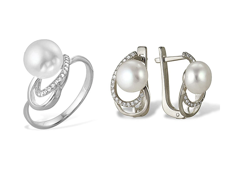Комплект из белого золота, украшенный белыми речными жемчужинами 7-9 мм, (1401-1971)