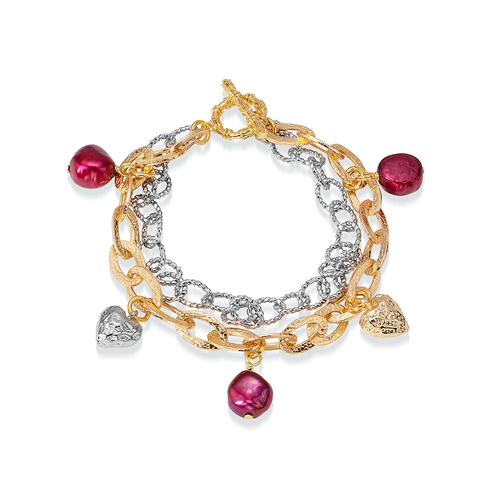 Браслет из ювелирного сплава с красным барочным жемчугом 11-12 мм, (7445)