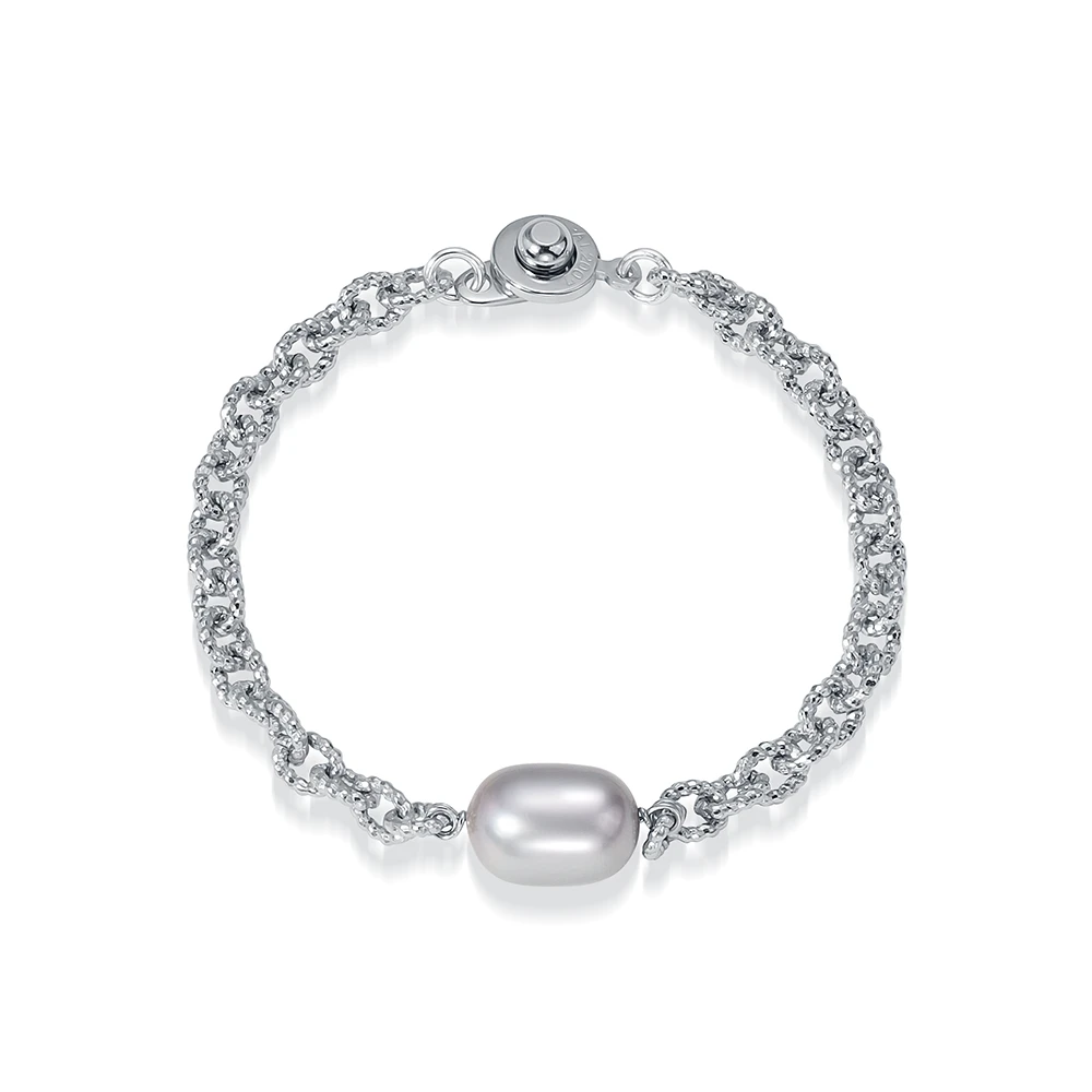 Браслет изготовлен из гипоаллергенного ювелирного сплава, украшен натуральным каплевидным жемчугом.
