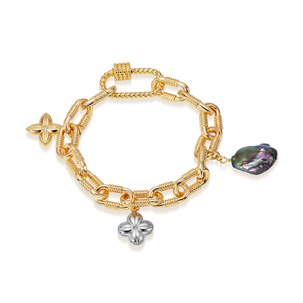 Браслет изготовлен из гипоаллергенного ювелирного сплава, украшен натуральным барочным жемчугом.