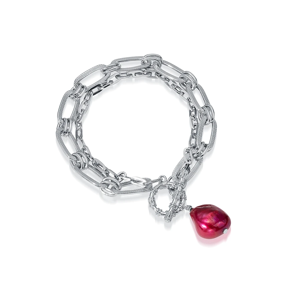 Браслет из ювелирного сплава с красным барочным жемчугом 11-12 мм, (7442)