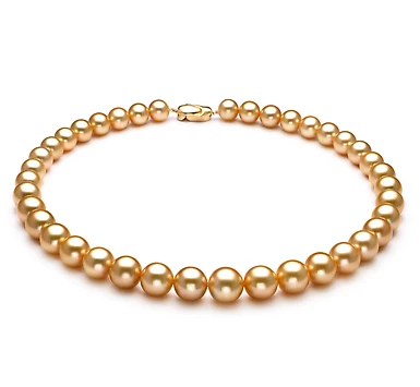 Роскошное ожерелье собрано из отборных морских Австралийских жемчужин. Родина жемчужин — теплые воды Южных морей в Австралии. Жемчужины имеют насыщенный золотистый цвет, яркий блеск, идеальную сферическую форму.