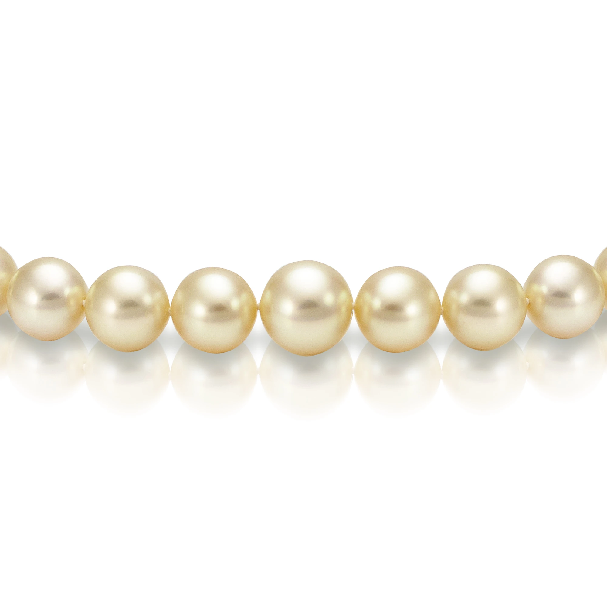 Ожерелье собрано из золотистых морских Австралийских жемчужин. Родина жемчужин - теплые воды Южных морей в Австралии. Жемчужины имеют яркий блеск, идеальную сферическую форму.