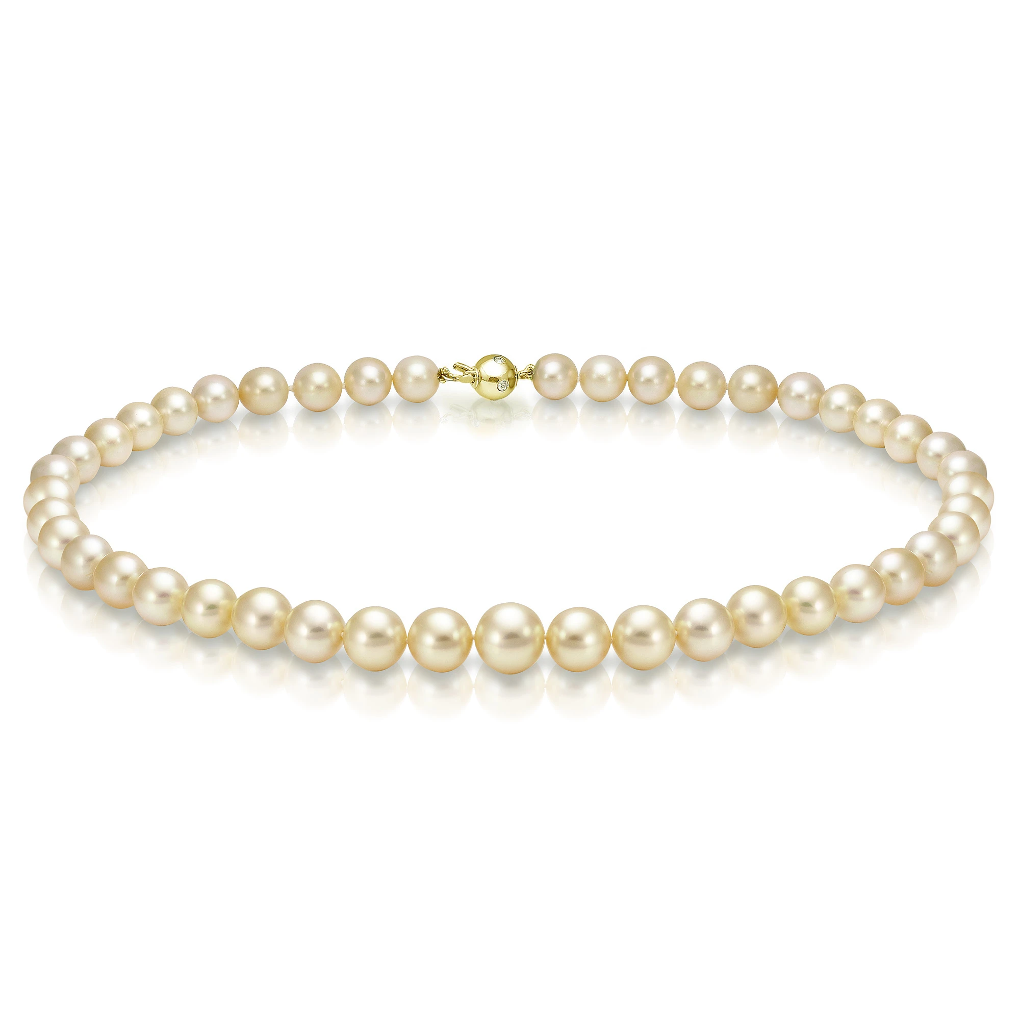 Роскошное ожерелье собрано из отборных морских Австралийских жемчужин. Родина жемчужин — теплые воды Южных морей в Австралии. Жемчужины имеют нежно—золотистый цвет, яркий блеск. Качество жемчужин очень высокое.