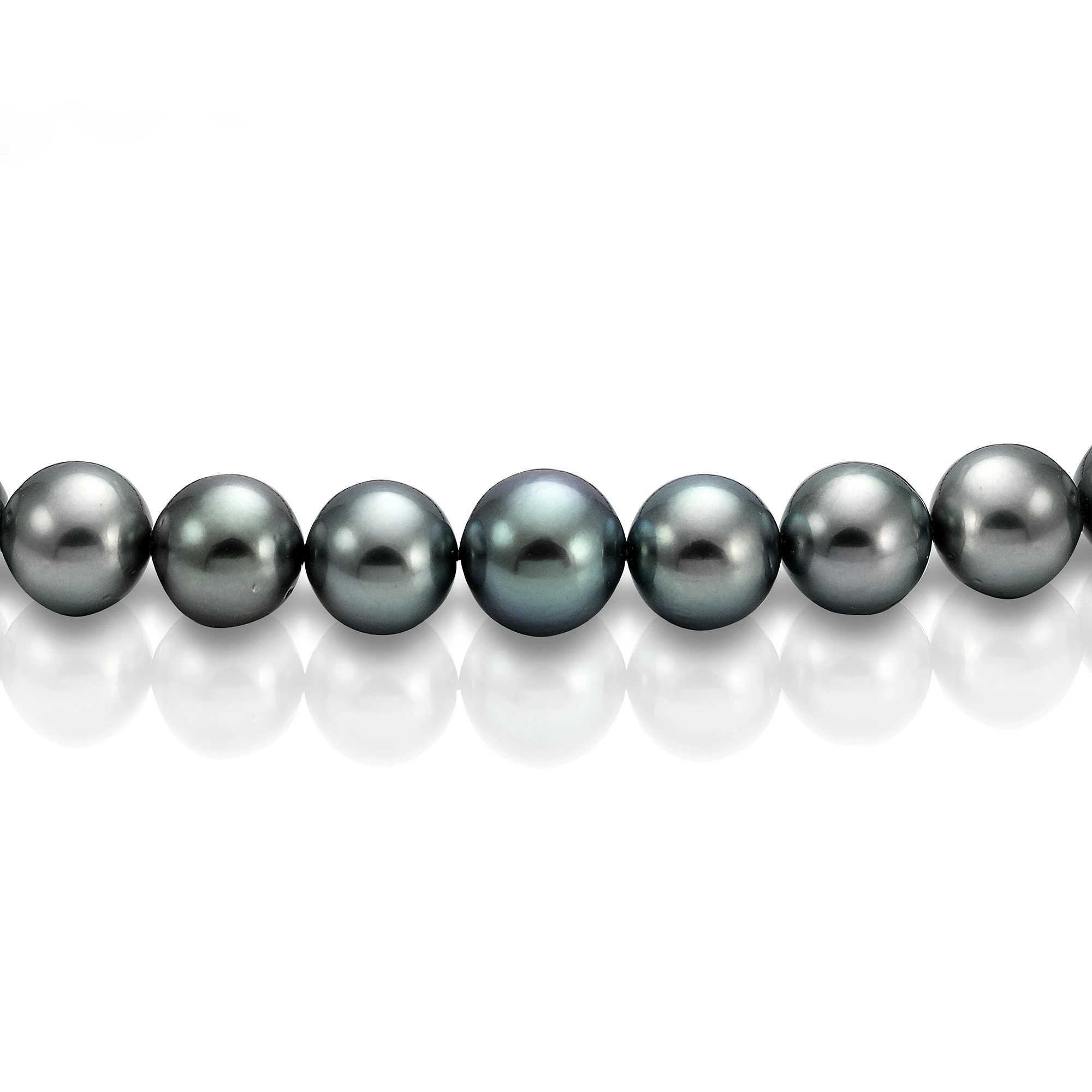 Роскошное ожерелье собрано из отборных очень крупных морских Таитянских жемчужин. Родина жемчужин — Французская Полинезия. Жемчужины имеют яркий блеск, идеальную сферическую форму, качество жемчуга в данном колье высокое, цвет жемчужин максимально темный.