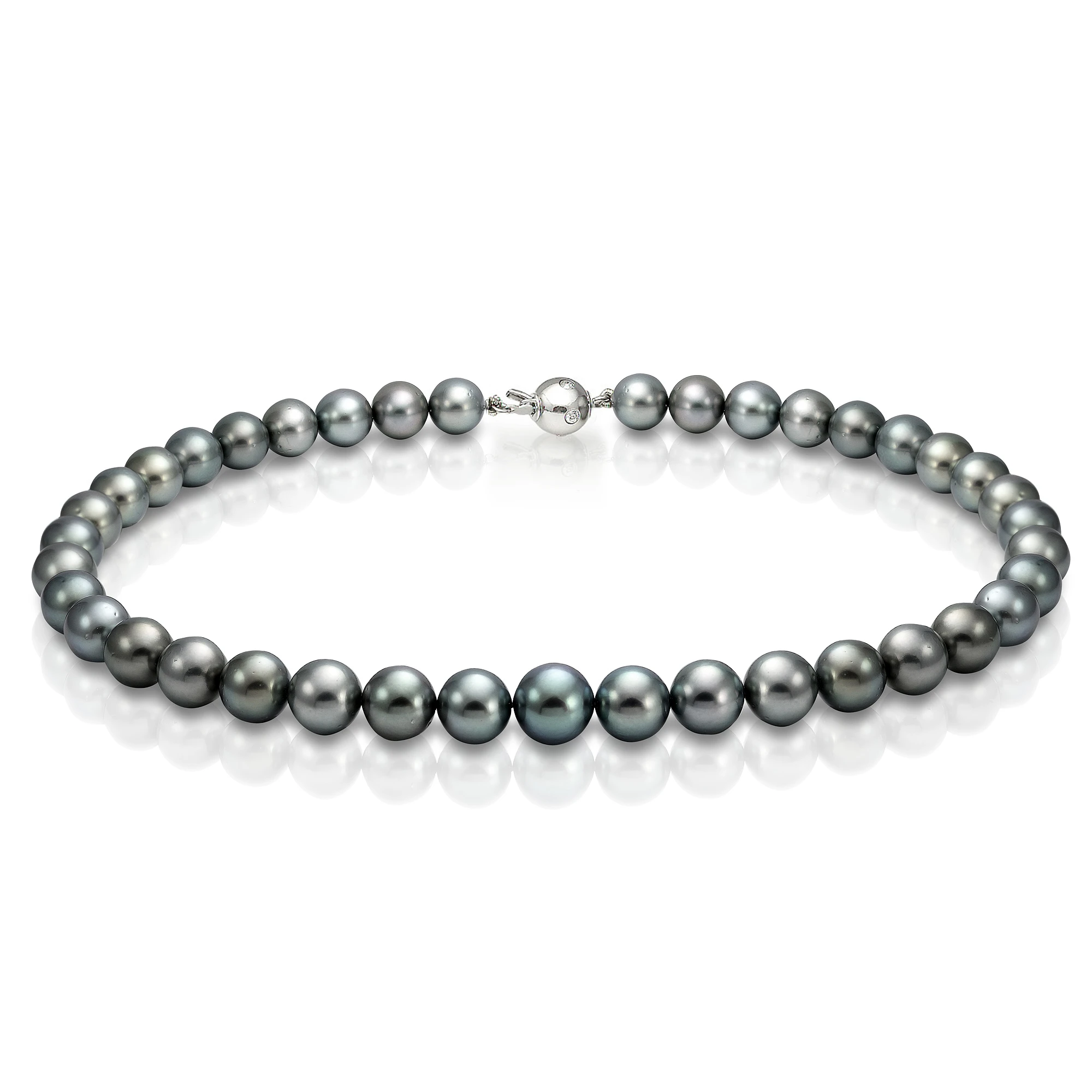 Ожерелье из черного круглого морского Таитянского жемчуга 9,1-11,6 мм. Качество наивысшее ААА, (3266)