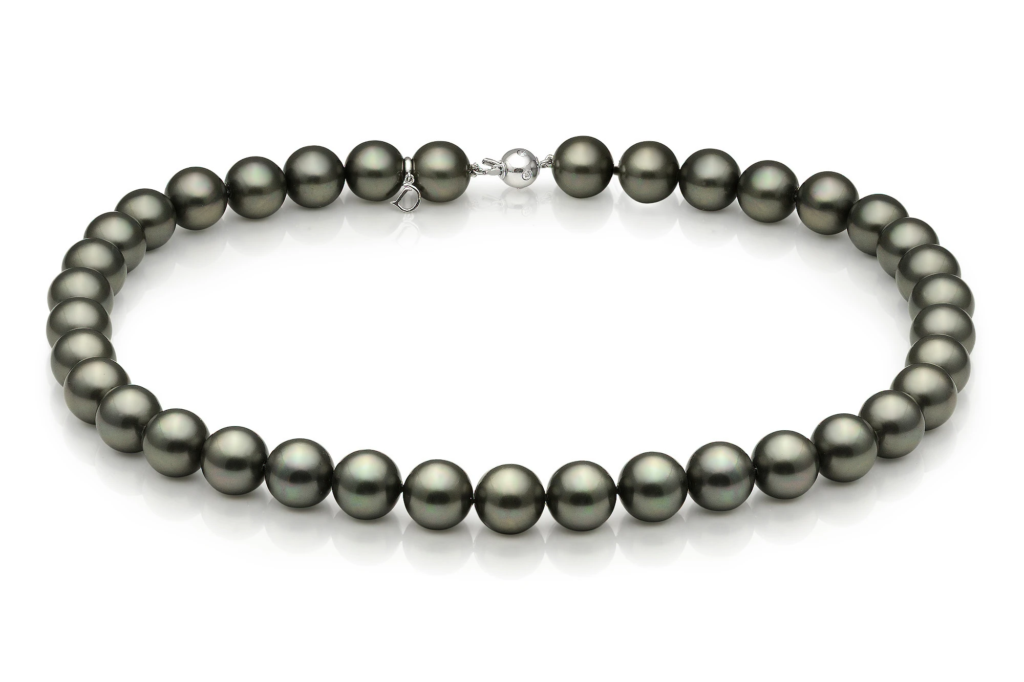 Роскошное ожерелье собрано из отборных морских Таитянских жемчужин. Родина жемчужин — Французская Полинезия. Жемчужины имеют яркий блеск, идеальную сферическую форму и ровную, гладкую поверхность.