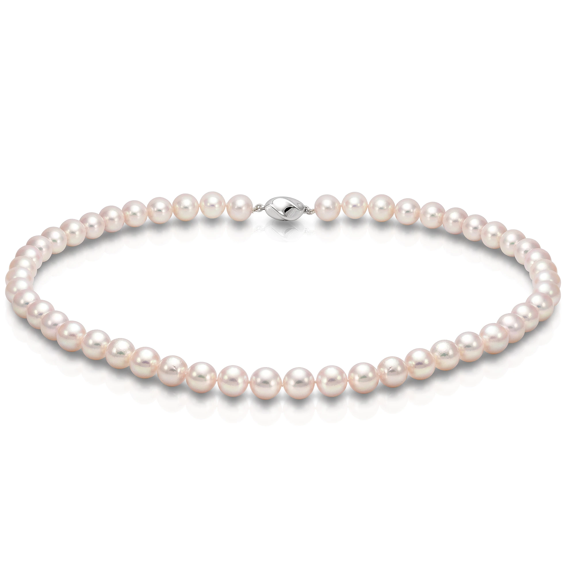 Классическое ожерелье собрано из натуральных морских жемчужин белого цвета, рожденных в теплых водах океана у берегов Японии. Данный вид жемчуга называется Акойя (Akoya) и считается самым ярким жемчугом в мире.