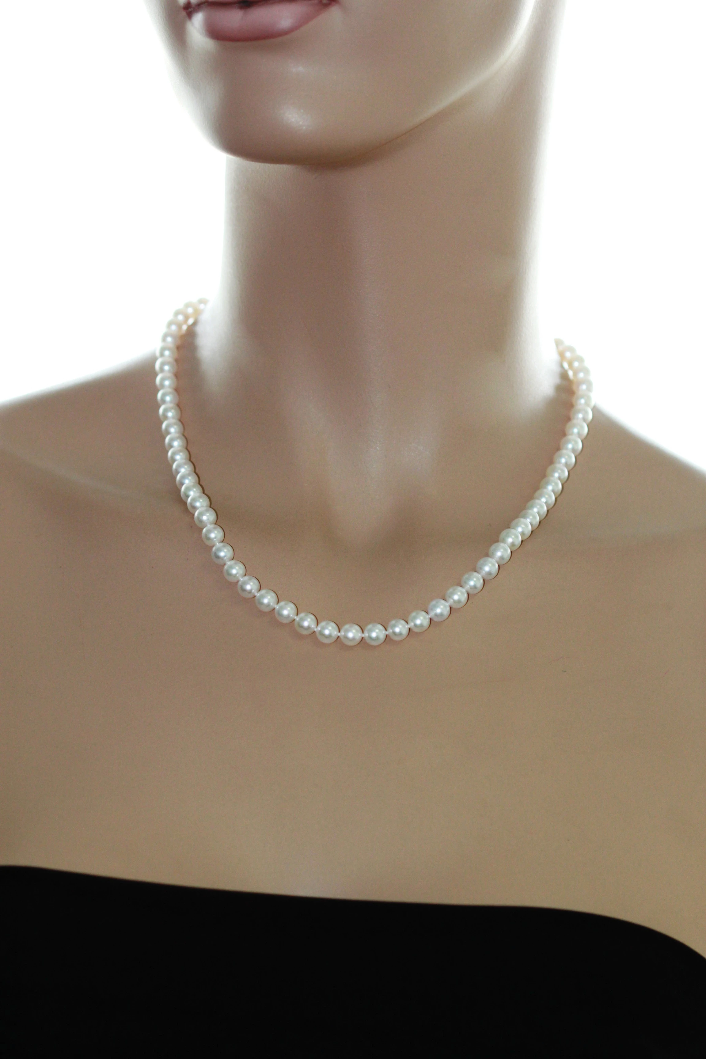 Ожерелье из белого круглого морского жемчуга Акойя (Япония). Жемчужины 7-7,5 мм. Класс АА, (6244)
