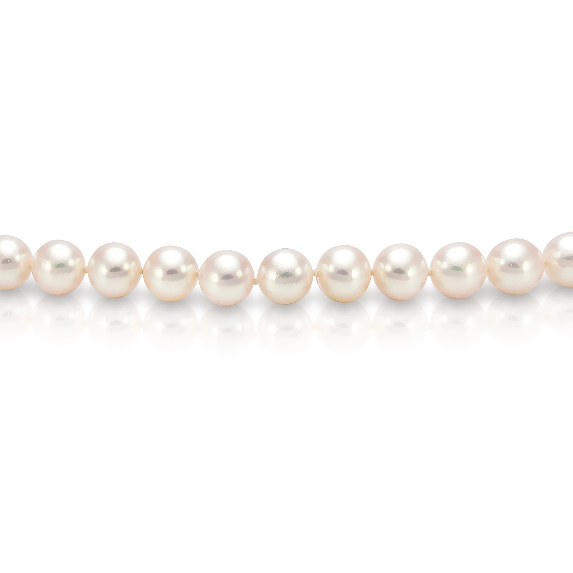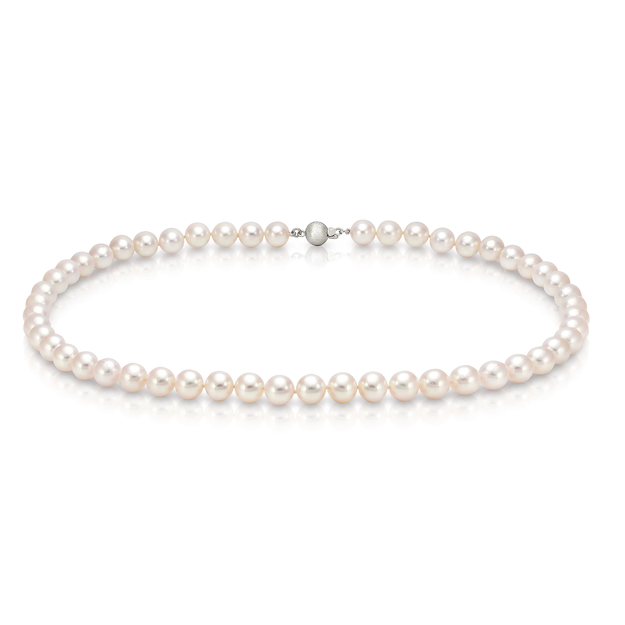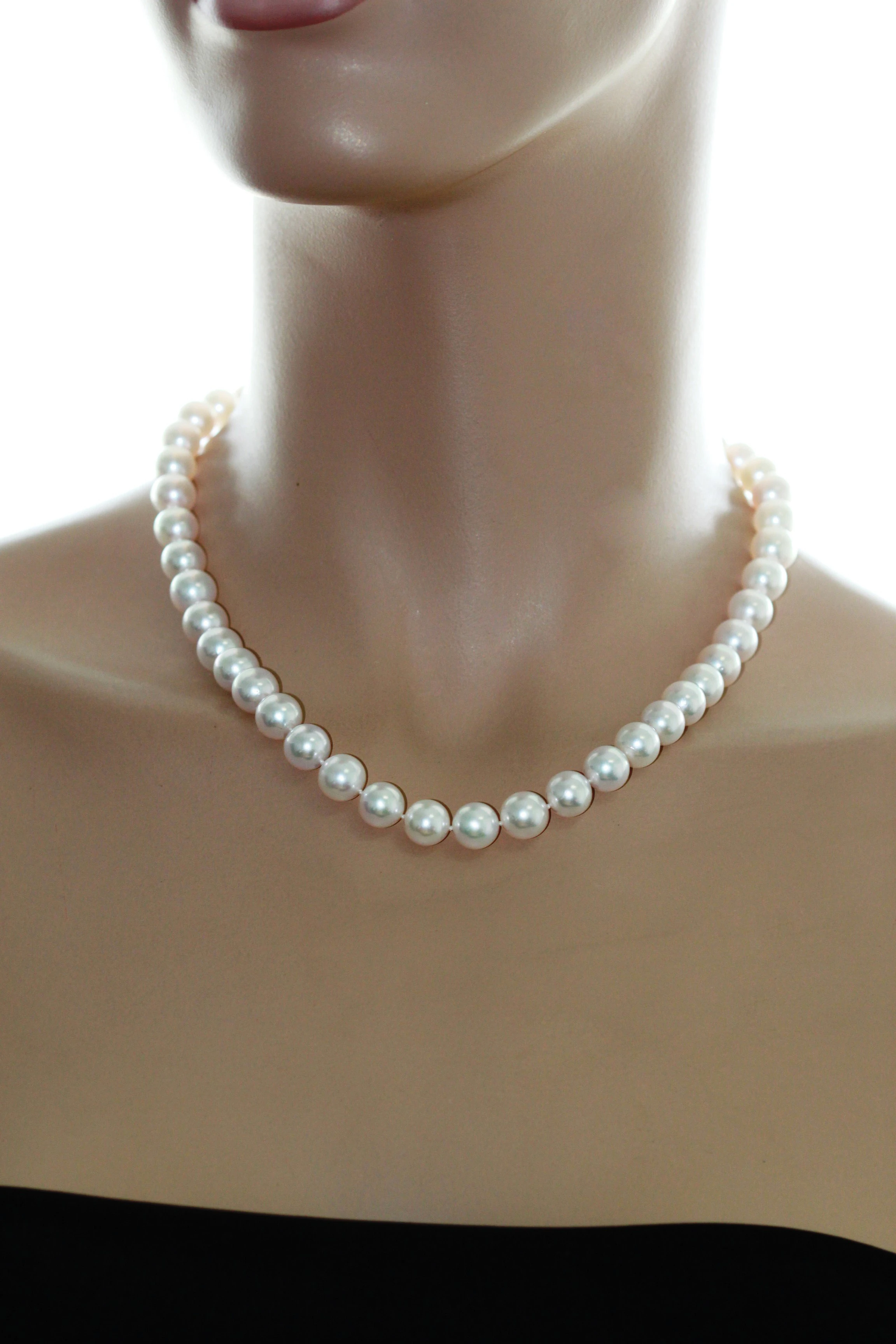 Классическое ожерелье собрано из натуральных морских жемчужин белого цвета, рожденных в теплых водах океана у берегов Японии. Данный вид жемчуга называется Акойя (Akoya) и считается самым ярким жемчугом в мире.