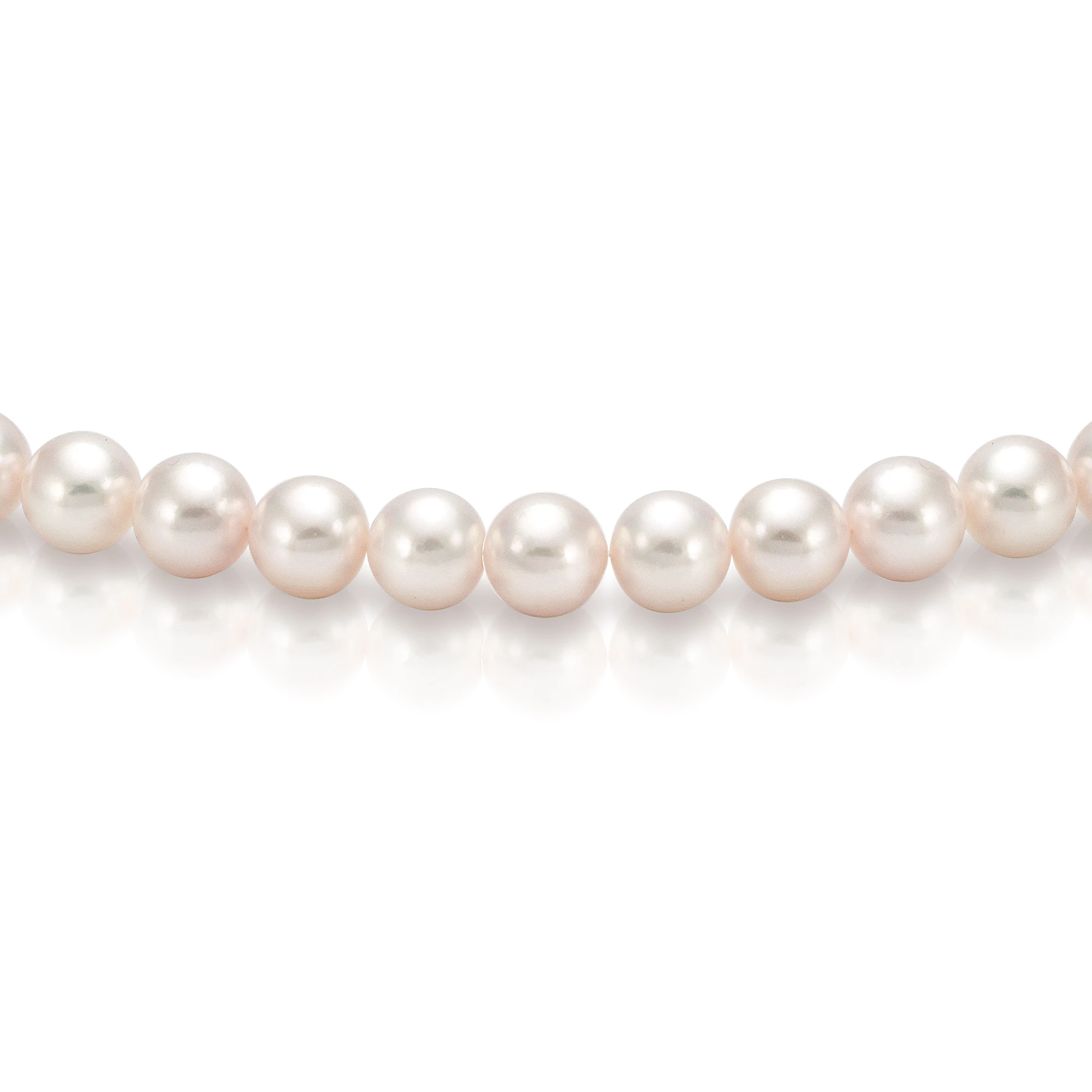 Классическое ожерелье собрано из натуральных морских жемчужин белого цвета, рожденных в теплых водах океана у берегов Японии. Данный вид жемчуга называется Акойя (Akoya) и считается самым ярким жемчугом в мире.