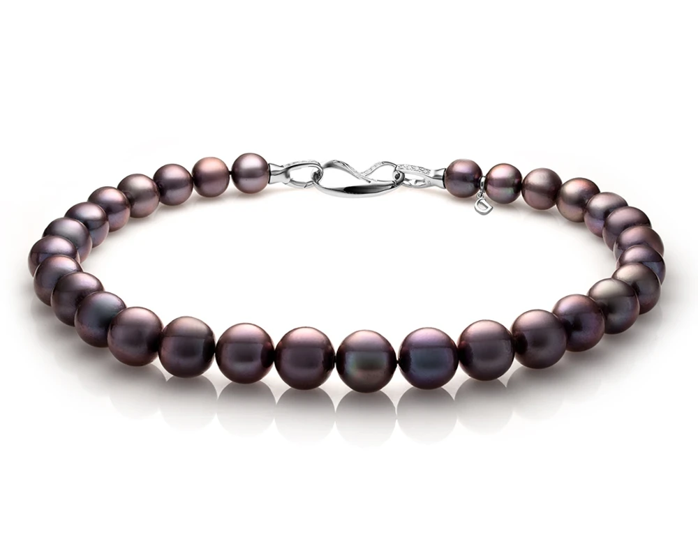 Ожерелье собрано из идеально круглых пресноводных черных жемчужин.