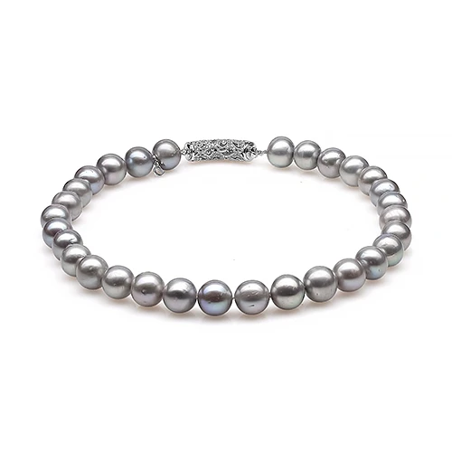 Ожерелье собрано из идеально круглых пресноводных серебристых жемчужин.