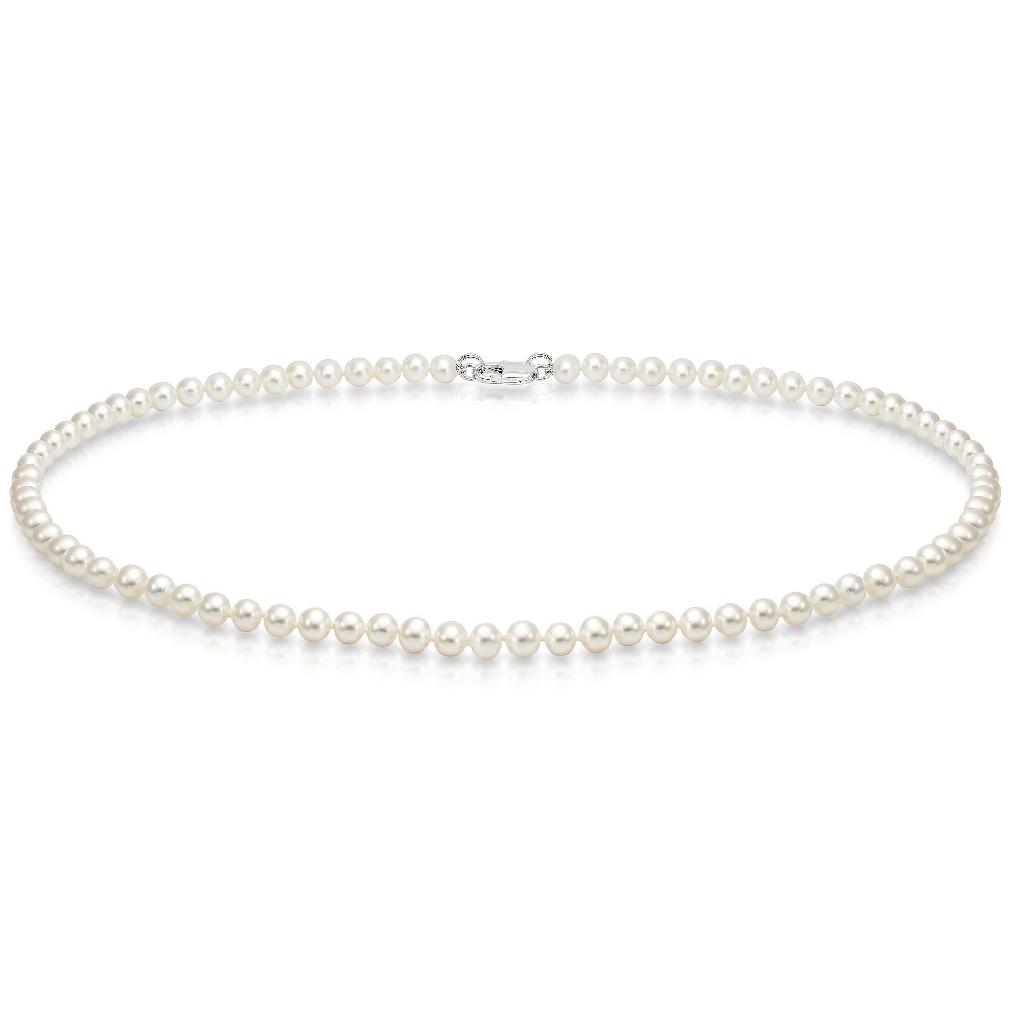 Ожерелье из белого круглого речного жемчуга класса ААА. Жемчужины 4-4,5 мм, (7748)