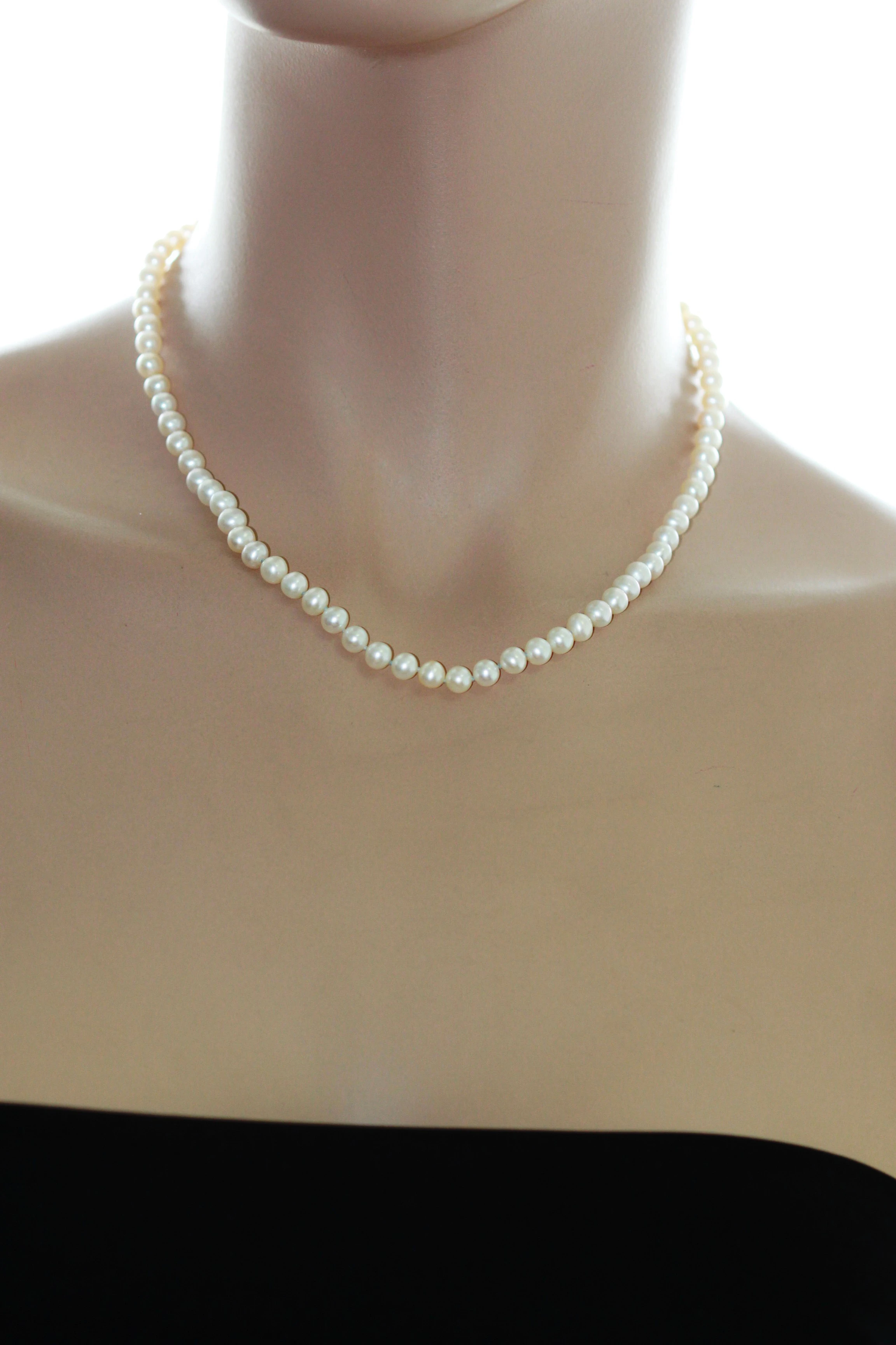 Классическое жемчужное ожерелье собрано из речных жемчужин (пресной воды), выращенных в Южном Китае. Мы подобрали круглые жемчужины белого цвета с ровной поверхностью, незначительным количеством дефектов и ярким блеском.