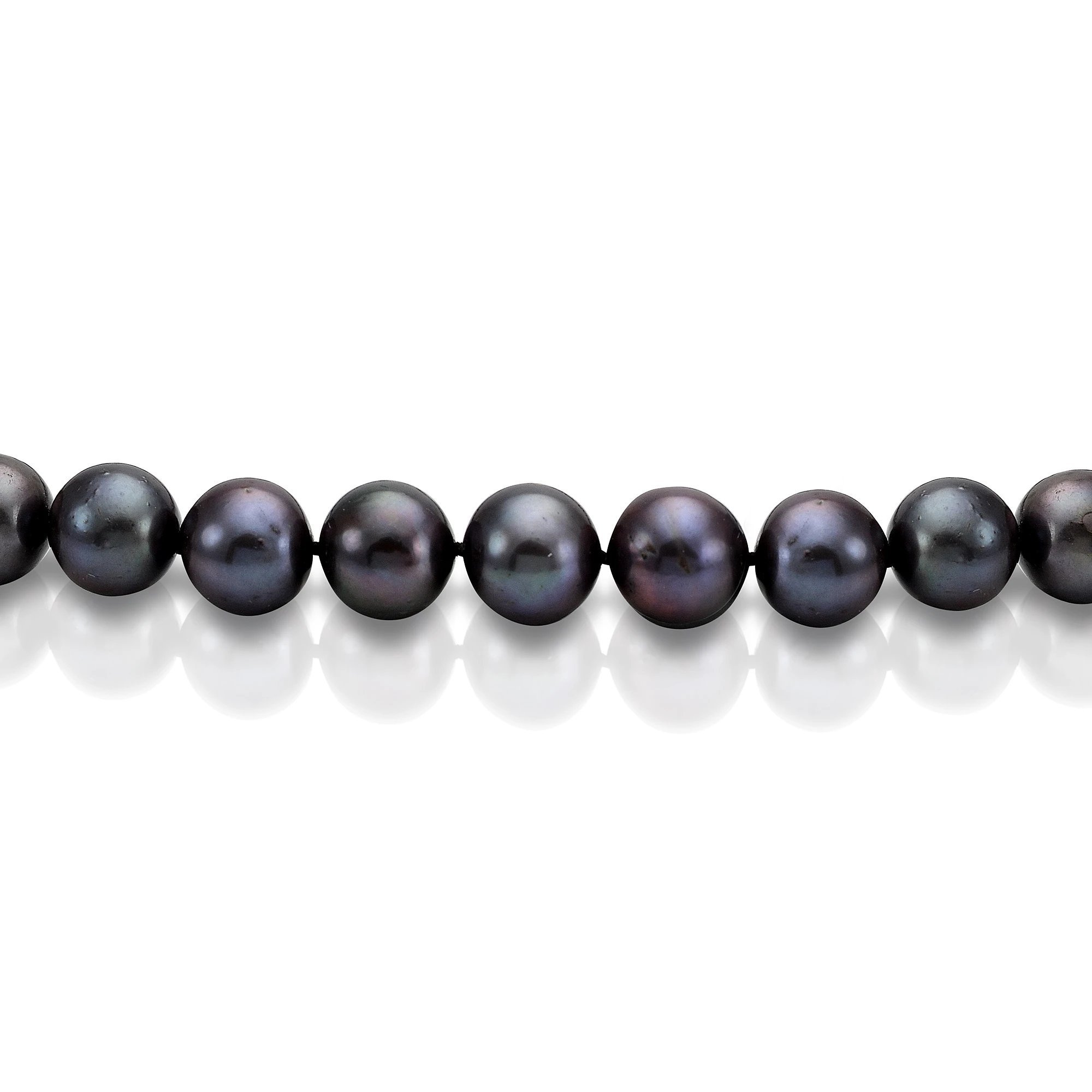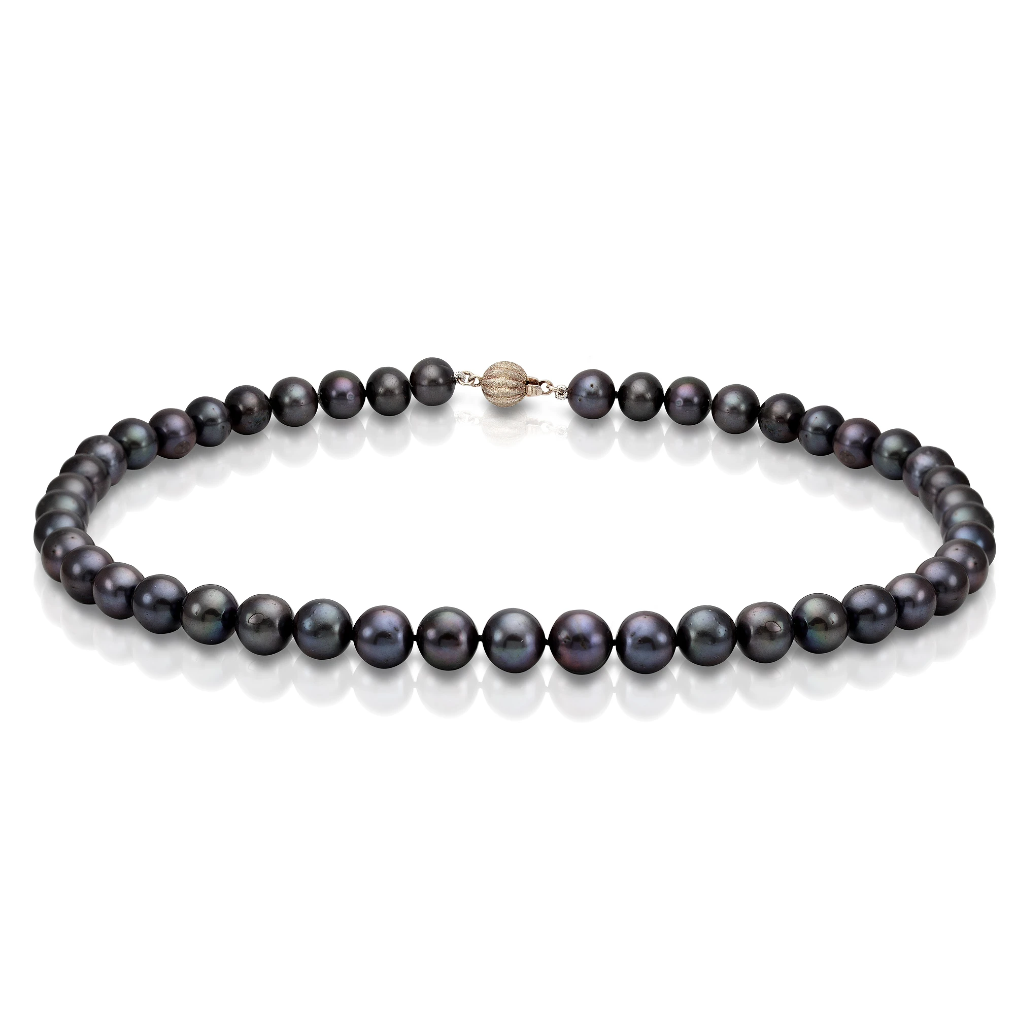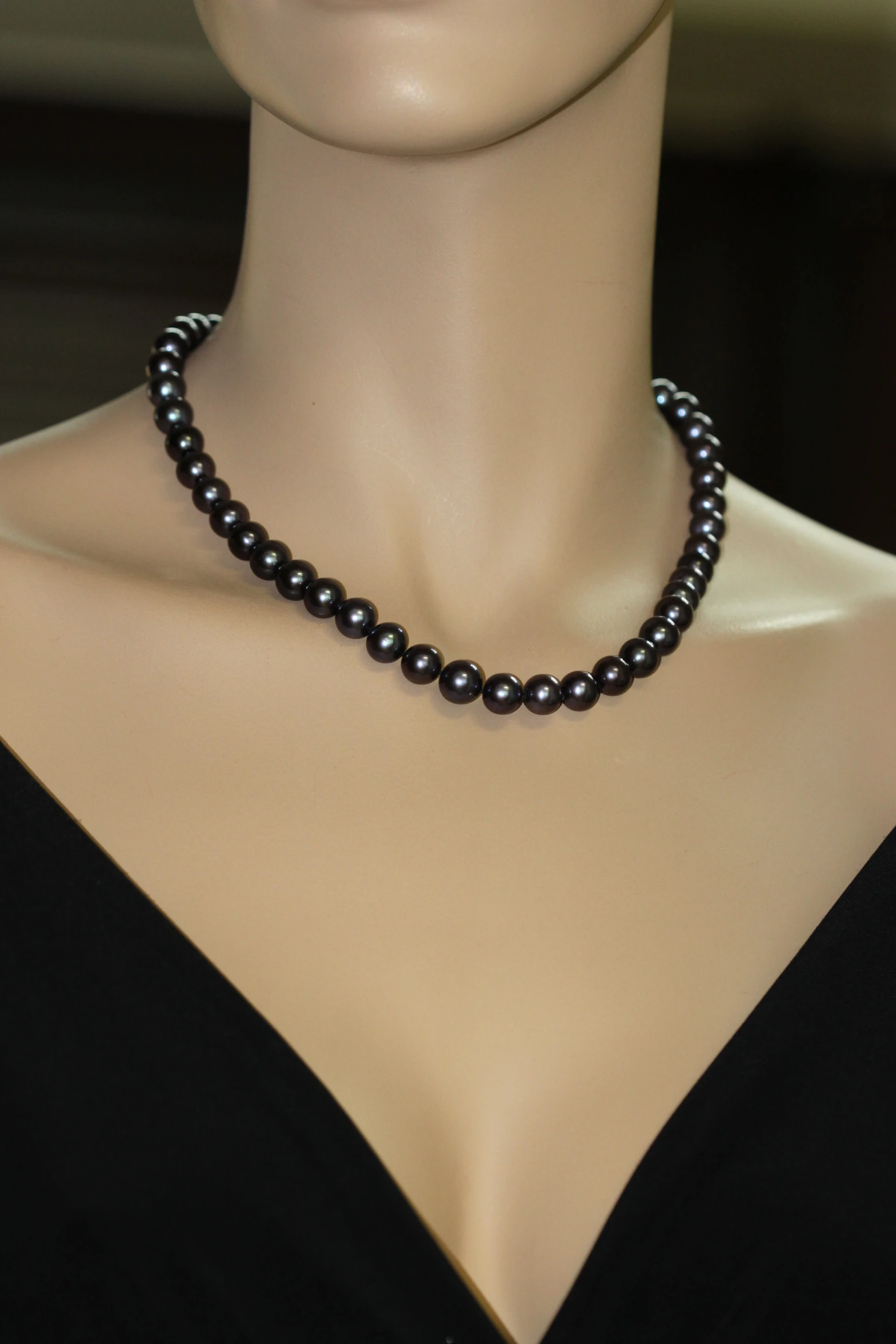 Классическое жемчужное ожерелье собрано из отборных жемчужин пресной воды, выращенных в Южном Китае. В колье подобраны идеально круглые жемчужины черного цвета. Жемчужины имеют безупречно ровную поверхность с минимальным количеством дефектов и очень яркий блеск.