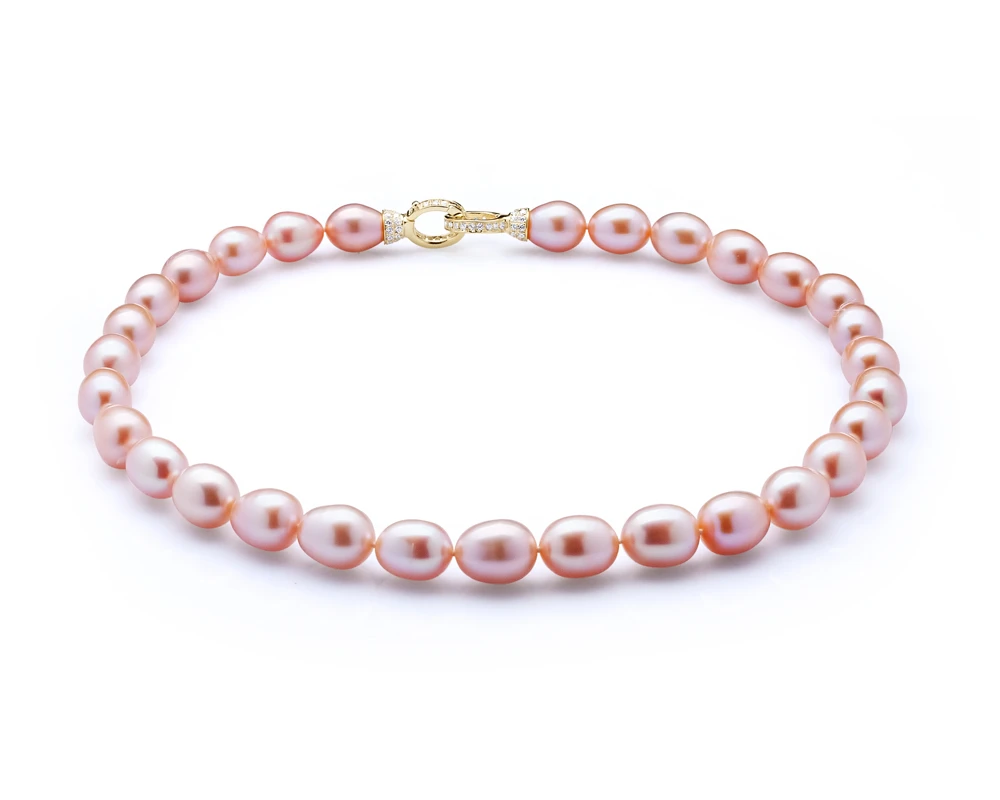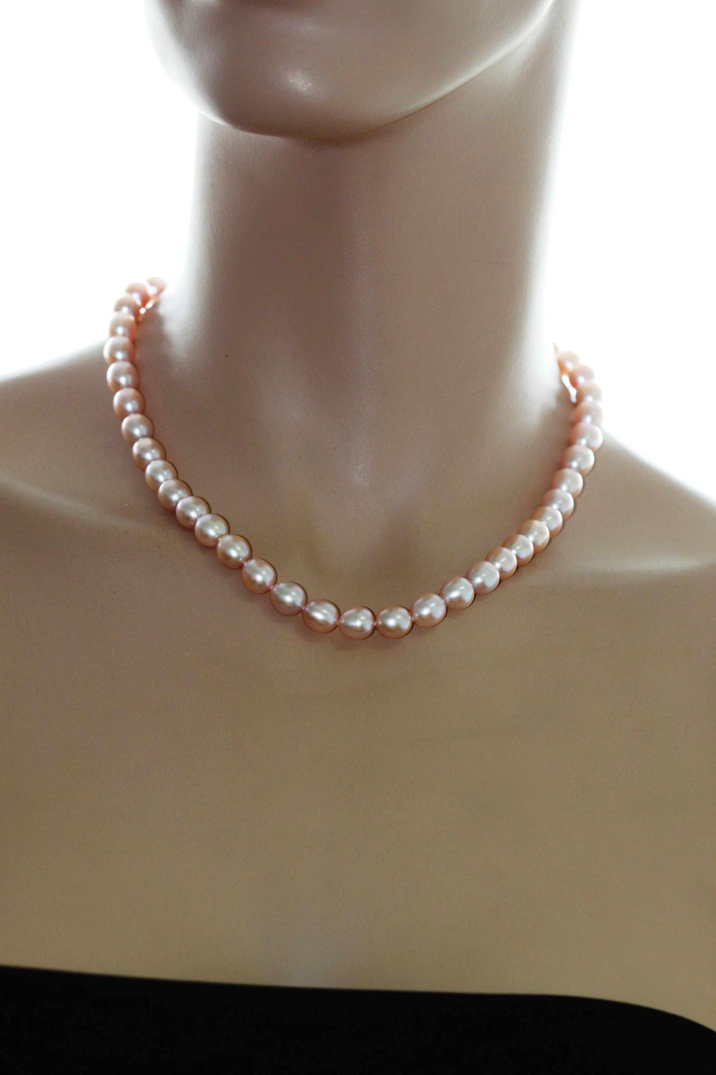 Ожерелье из розового рисообразного жемчуга. Жемчужины 10-11 мм, (3061)