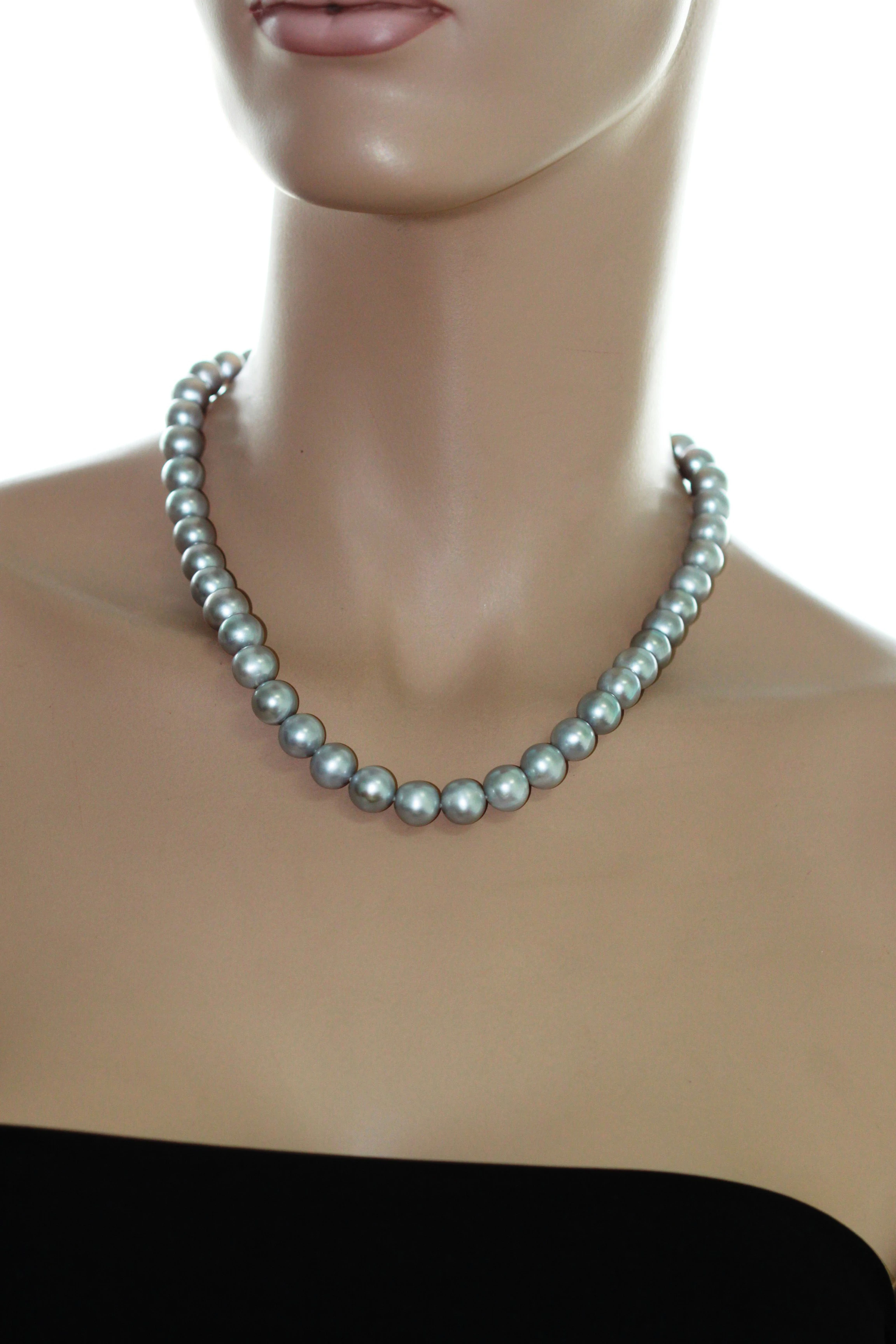 Ожерелье из серого круглого речного жемчуга класса АА+. Жемчужины 10,5-11,5 мм, (890)