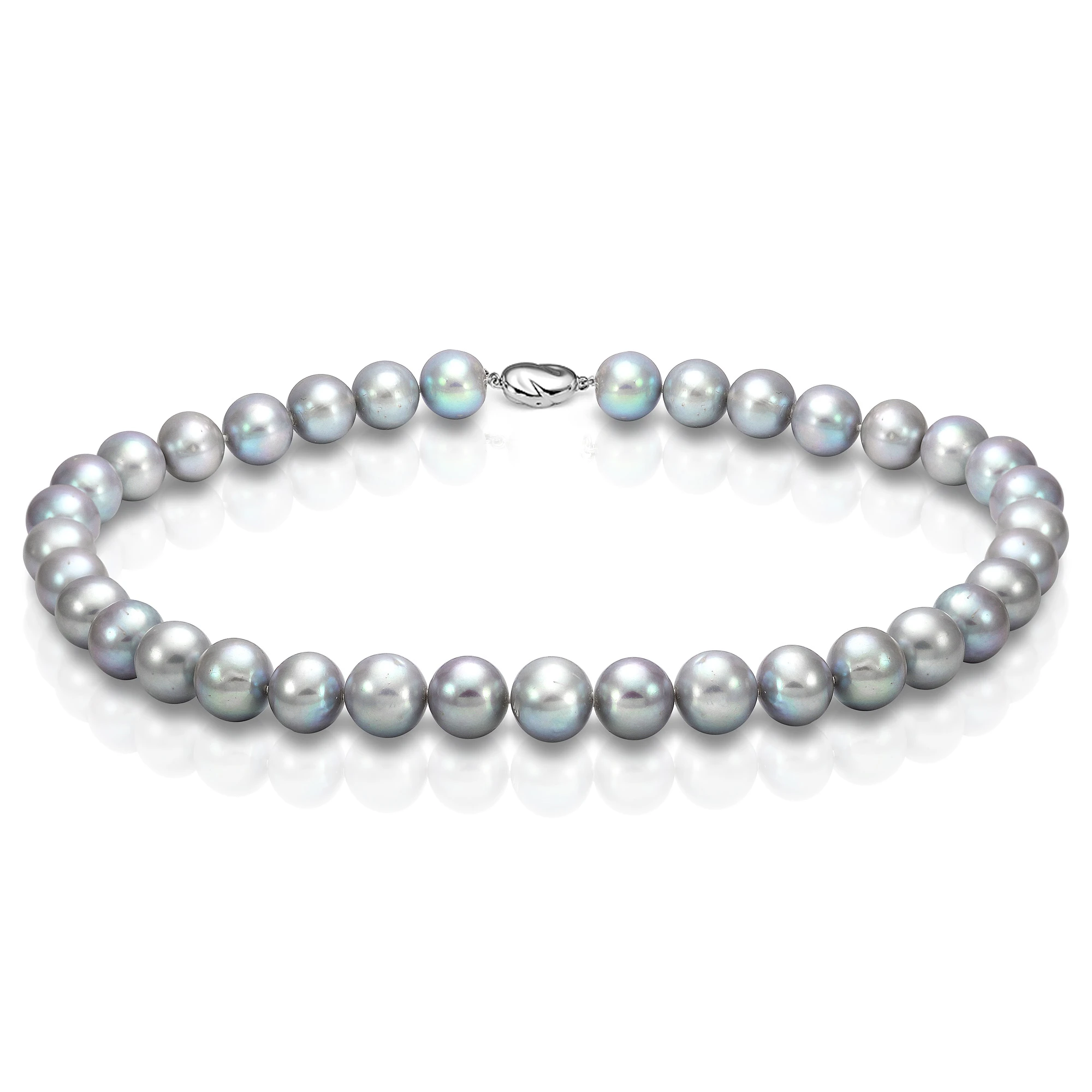Классическое жемчужное ожерелье собрано из отборных жемчужин пресной воды, выращенных в Южном Китае. В колье подобраны идеально круглые жемчужины модного в этом сезоне благородного цвета металлик (серебристый, серый). Жемчужины имеют ровную поверхность и очень яркий блеск.