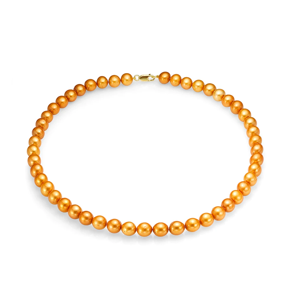 Ожерелье из золотистого круглого речного жемчуга класса ААА. Жемчужины 8,5-9,5 мм, (6098)