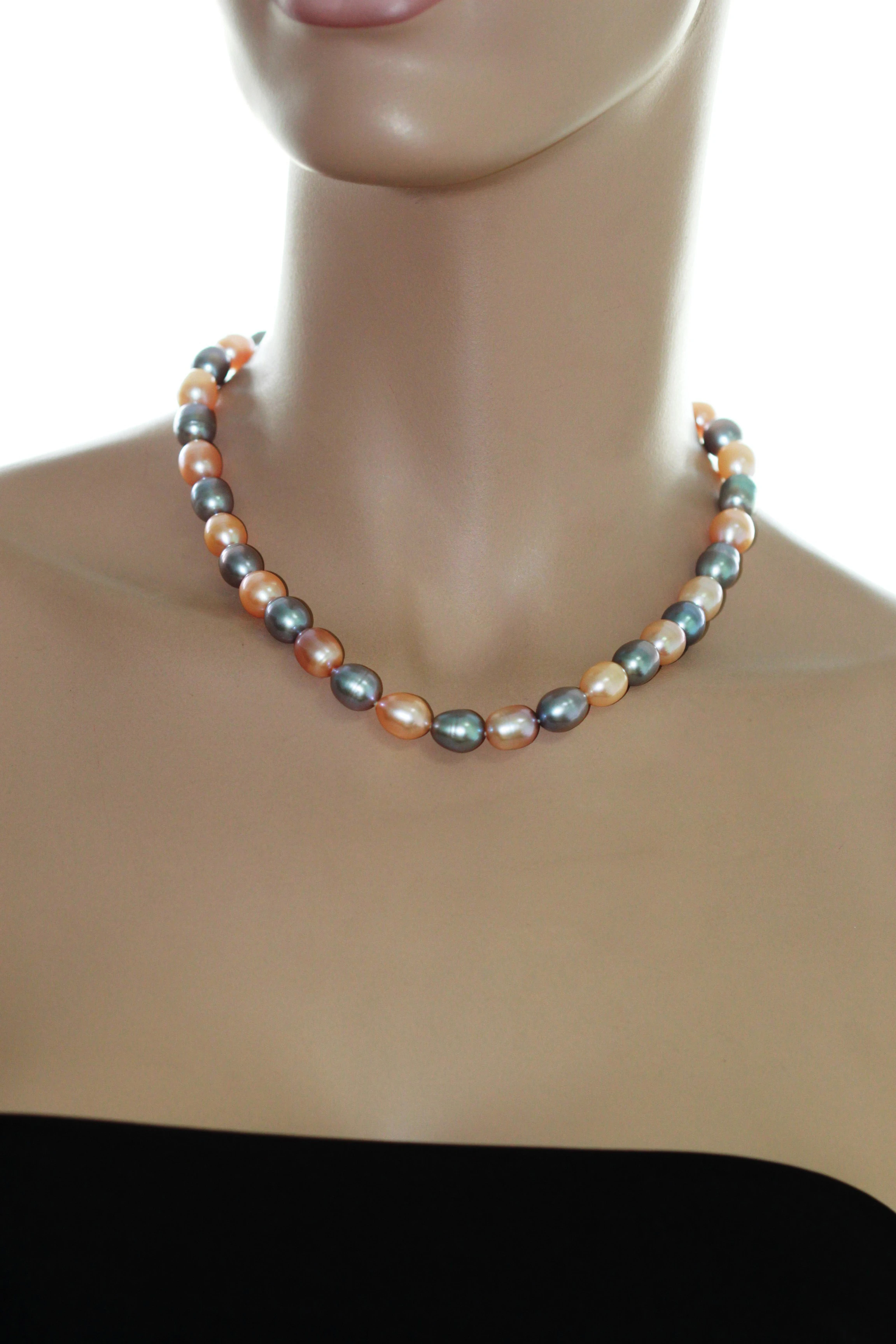 Ожерелье "микс" из рисообразного речного жемчуга. Жемчужины 10-11 мм, (2663)