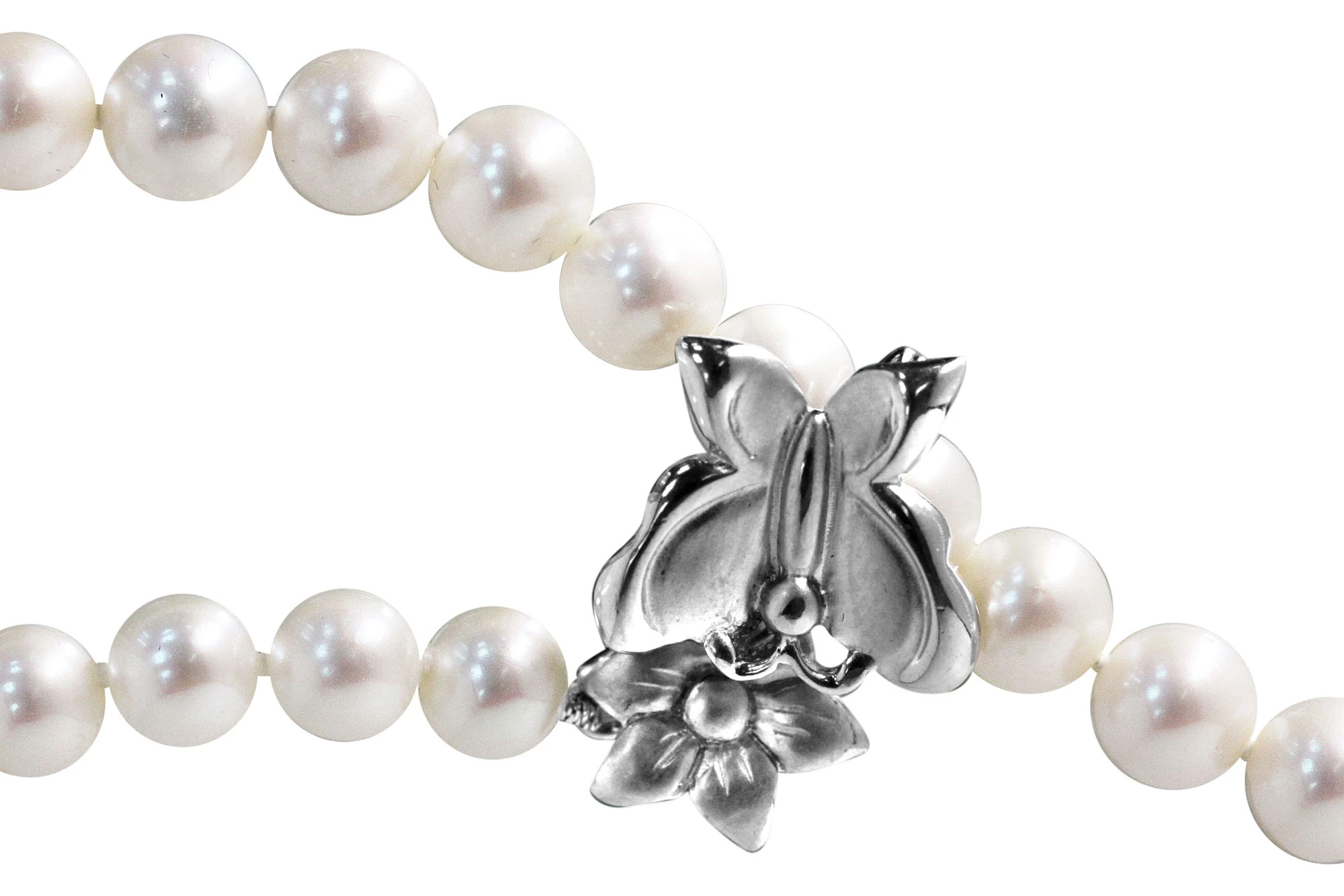 Ожерелье собрано из отборных пресноводных жемчужин белого цвета с ярким перламутровым блеском. Специальная застежка из серебра позволяет менять длину данного изделия.