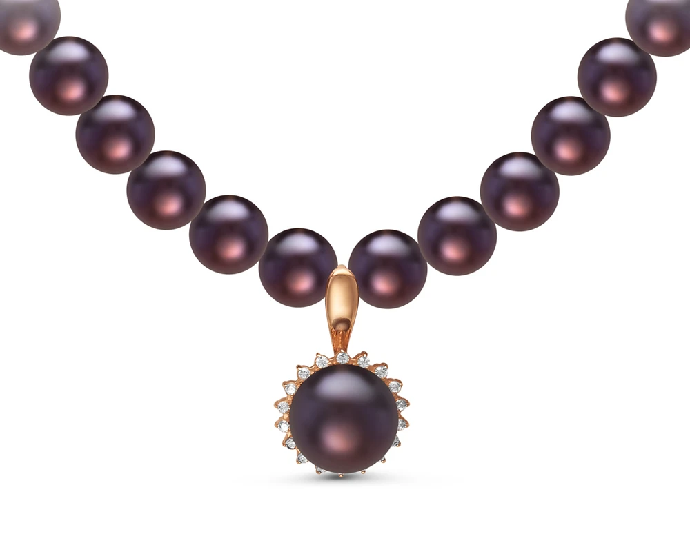 Ожерелье из черного речного жемчуга с кулоном из серебра. Жемчужины 7,5-8 мм, (3508)