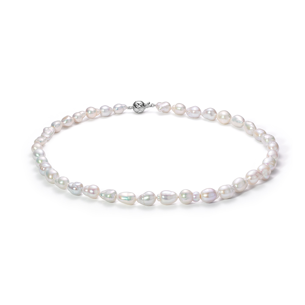 Ожерелье из белого барочного речного жемчуга класса ААА. Жемчужины 7,5-8 мм, (4345)