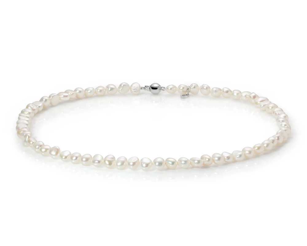 Ожерелье из белого барочного речного жемчуга класса ААА. Жемчужины 7-7,5 мм, (2810)