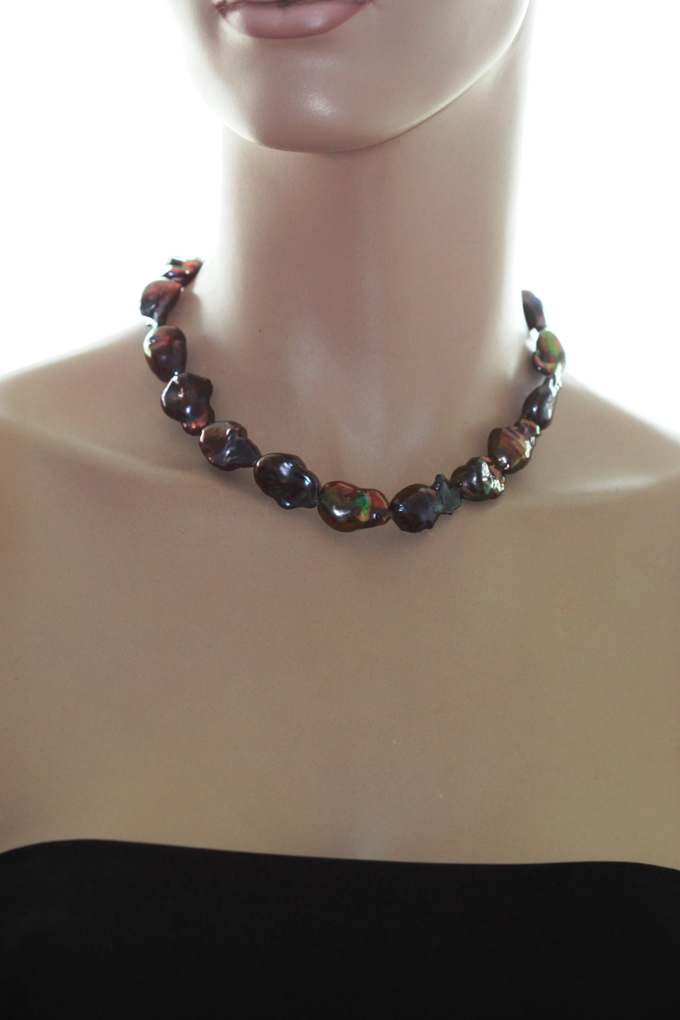 Ожерелье из черного барочного речного жемчуга. Жемчужины 13-19 мм, (896)