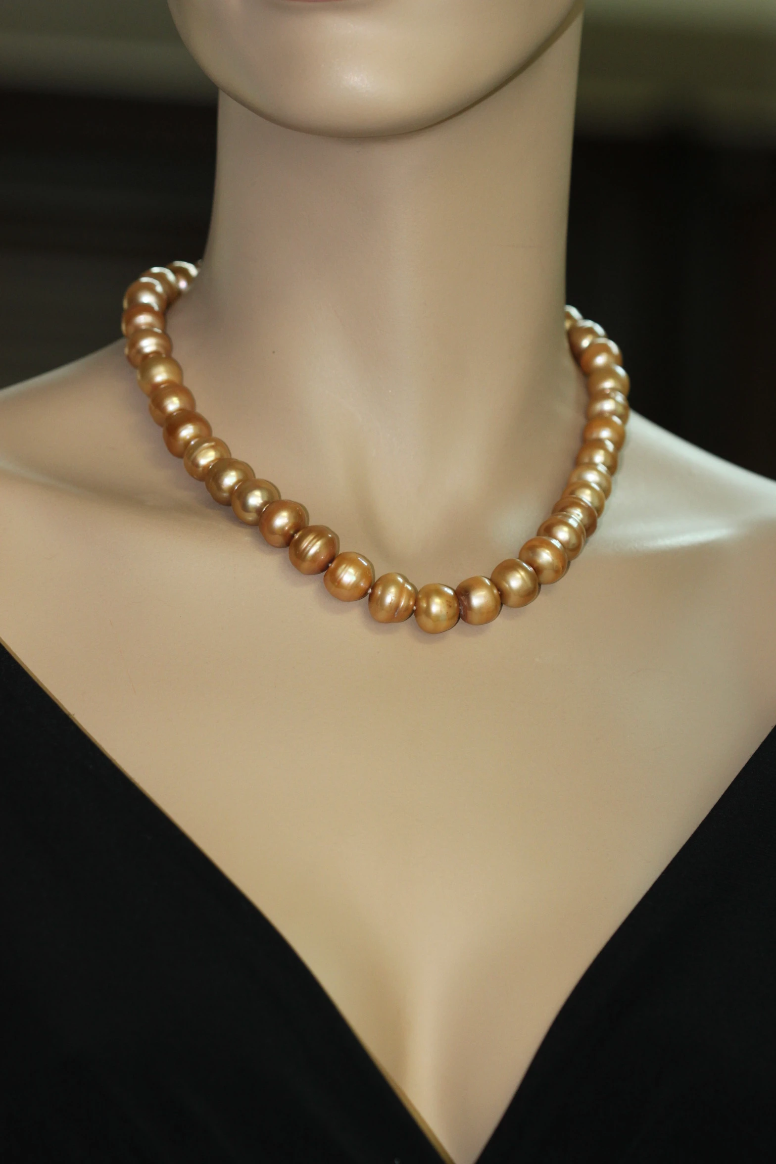 Ожерелье из золотистого барочного речного жемчуга. Жемчужины 12-14 мм, (2600)