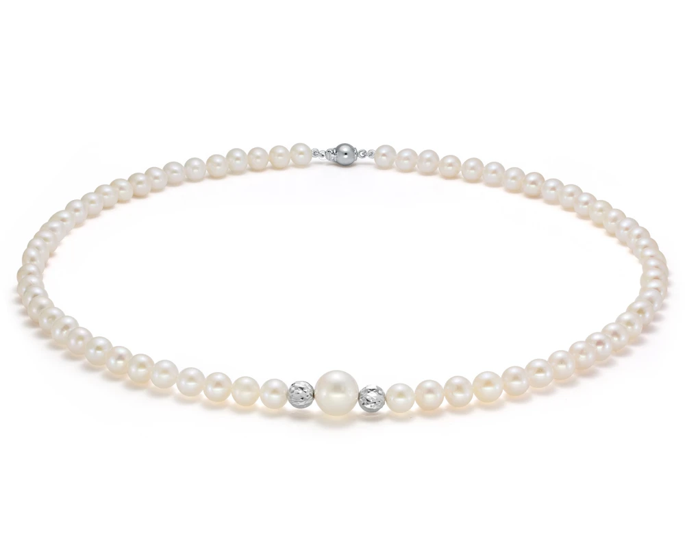 Ожерелье со вставками из белого круглого речного жемчуга класса ААА. Жемчужины 6-10 мм, (6191)