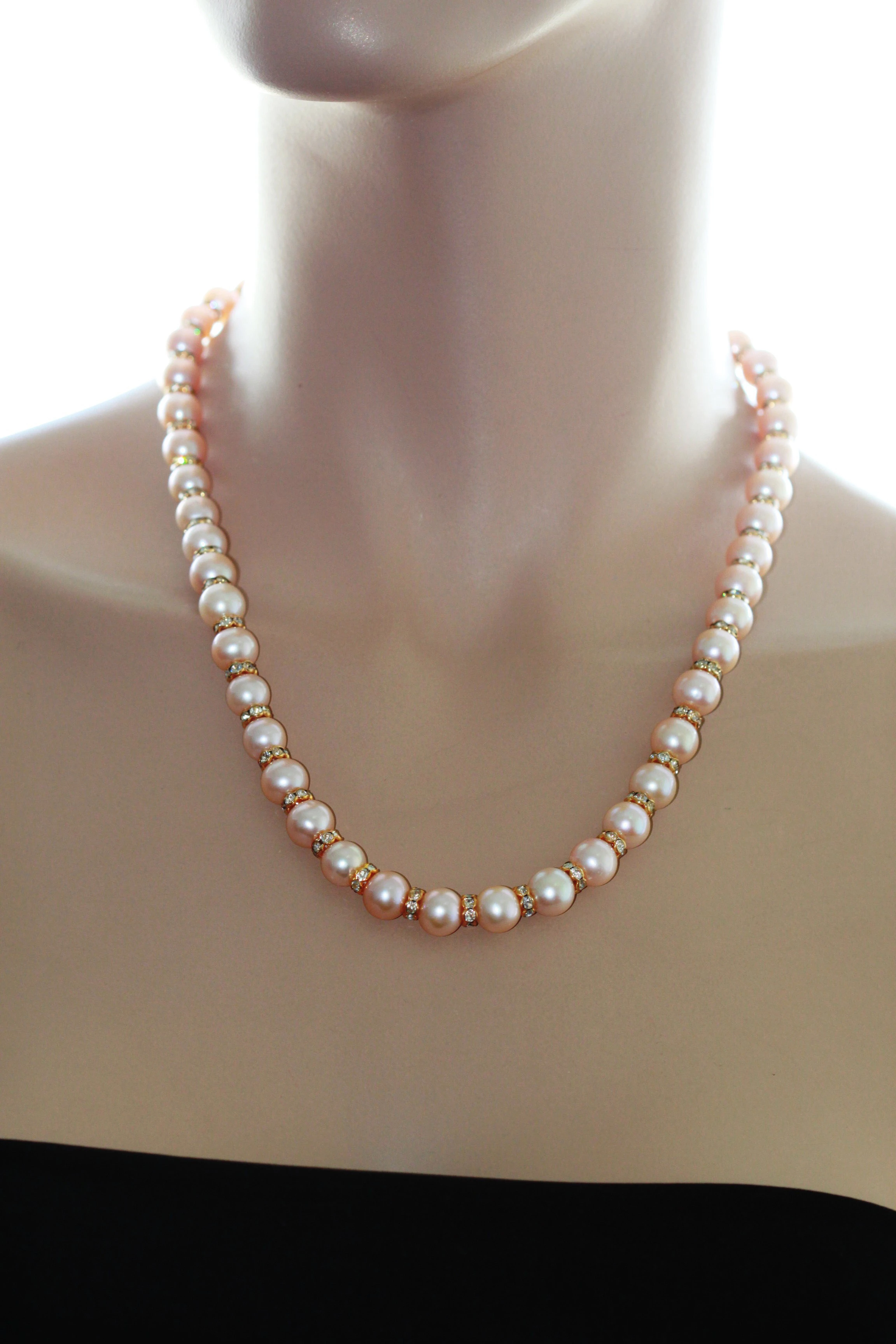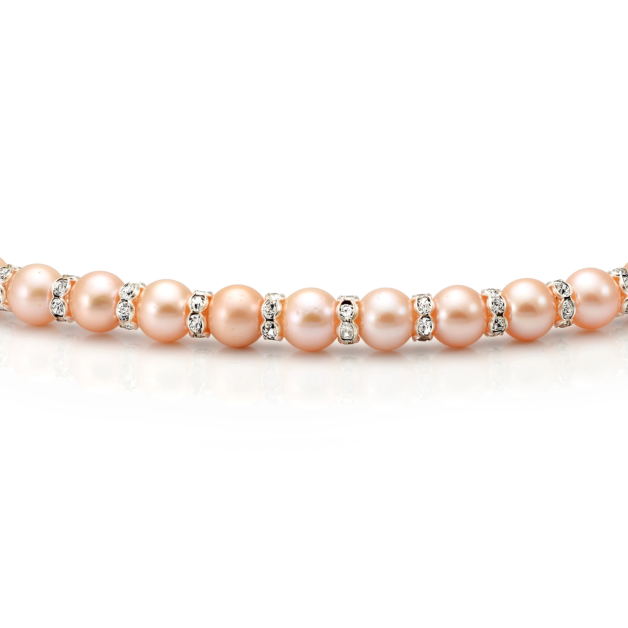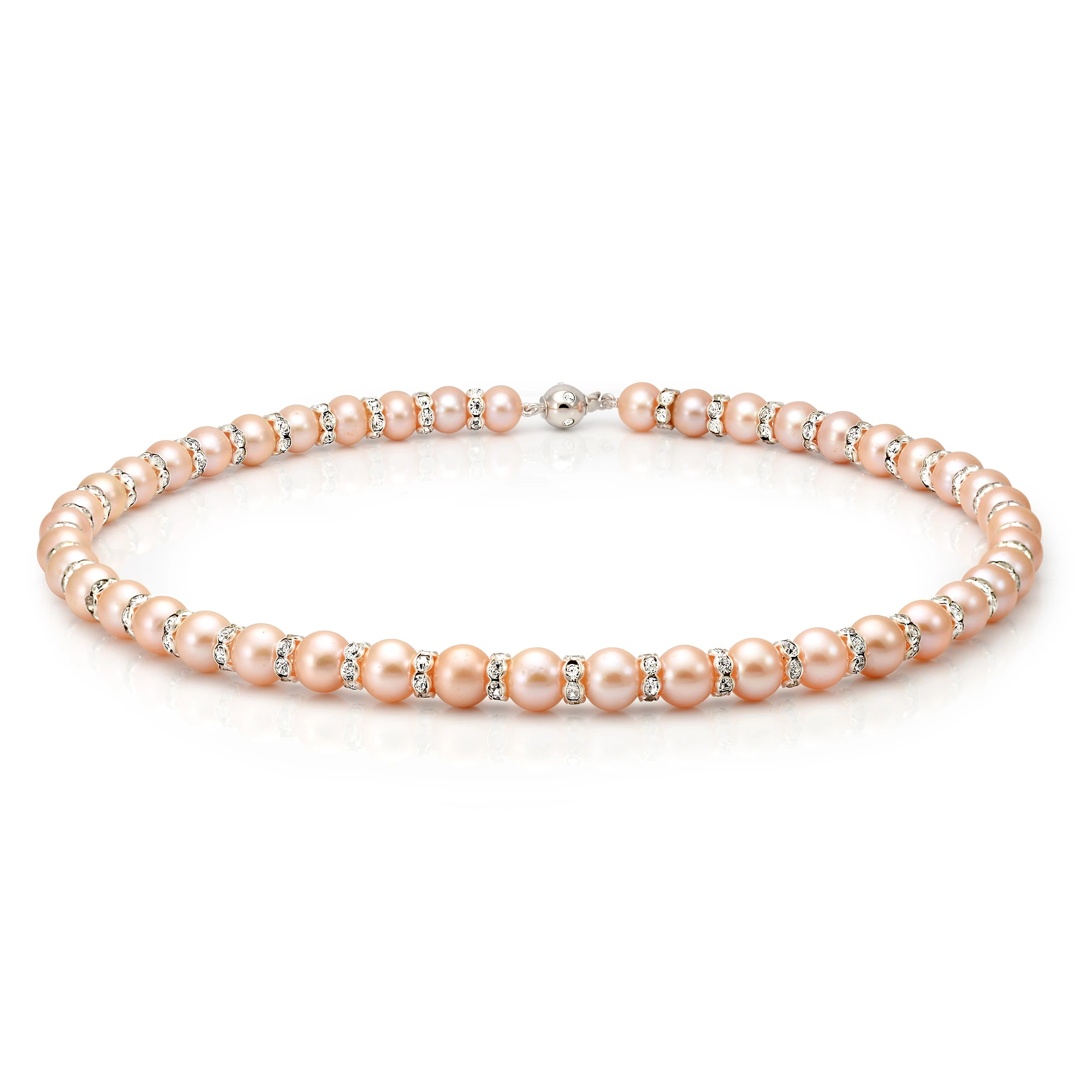 Ожерелье из розового круглого жемчуга со стразами. Жемчужины 8,5-9,5 мм, (1006(22500))