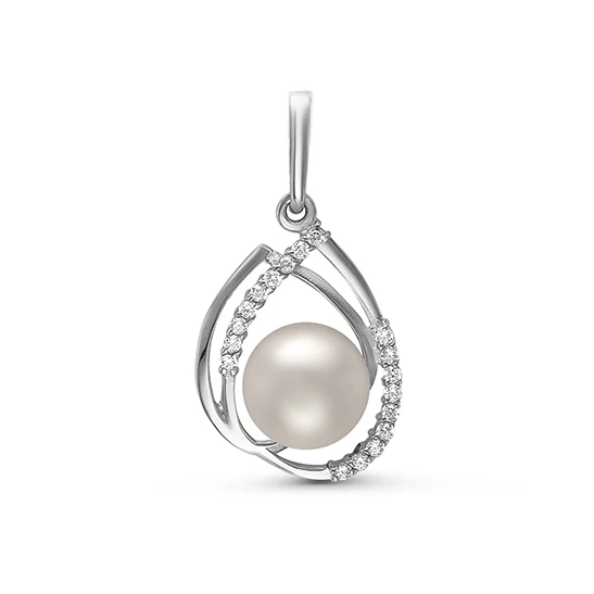 Подвеска выполнена из серебра 925 пробы, украшена фианитами и белой пресноводной жемчужиной. Высота кулона - 2,7 см.