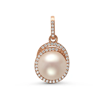 Подвеска выполнена из серебра 925 пробы с красным золотым покрытием, украшена фианитами и белой пресноводной жемчужиной.